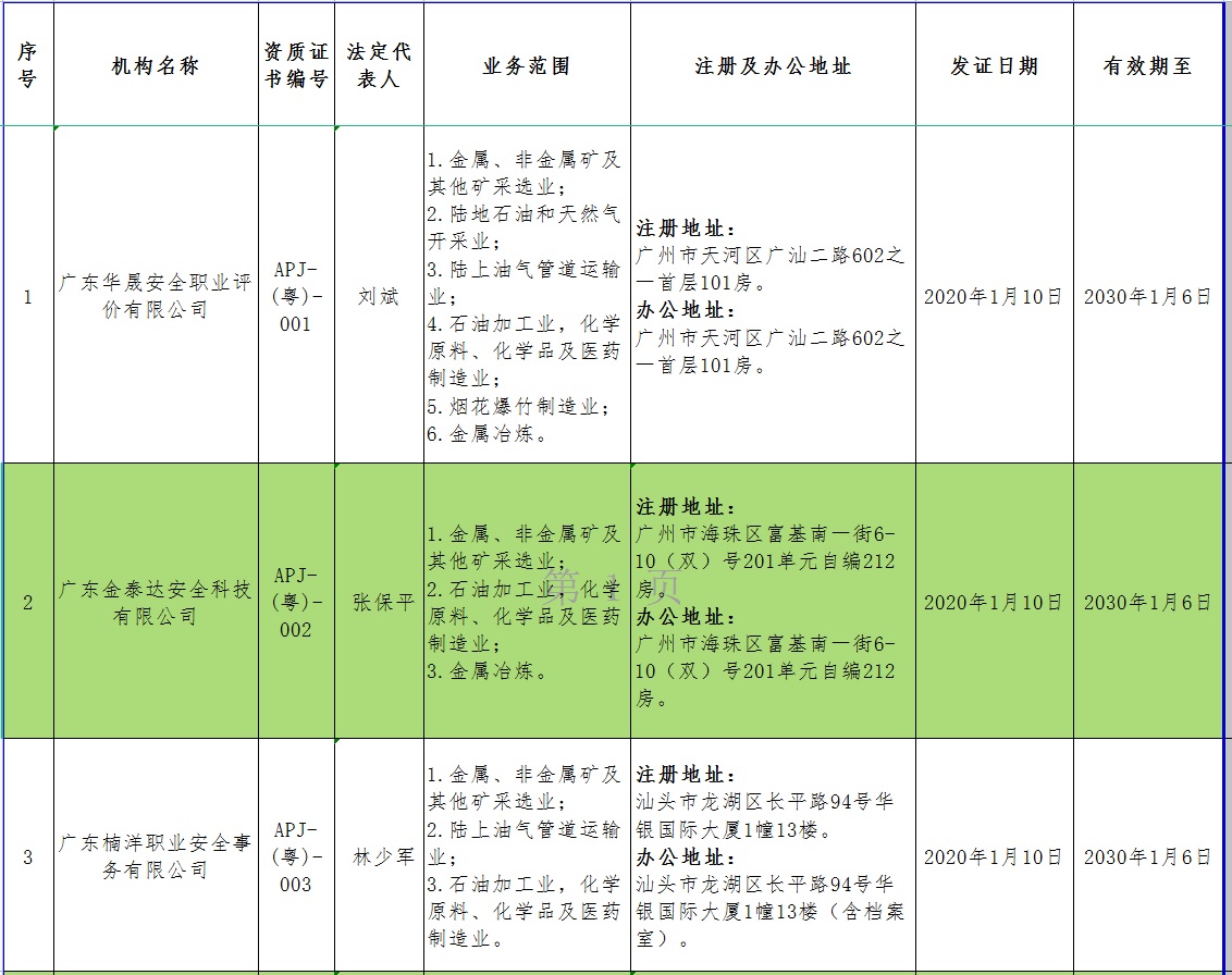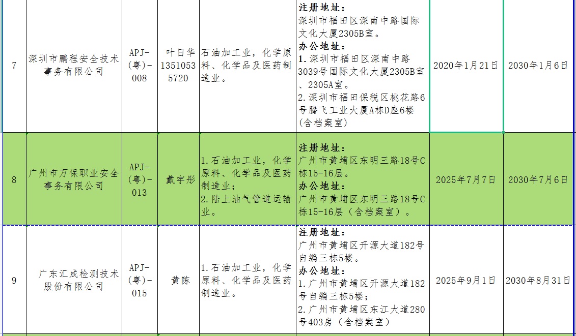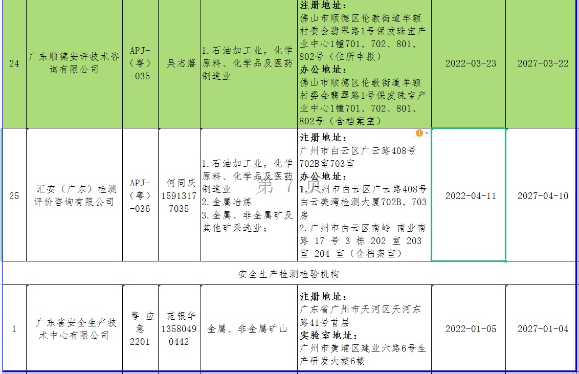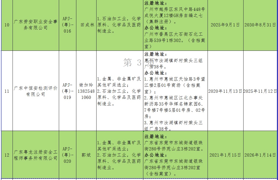 广东省行政区域内注册的安全评价机构25家,安全检测检验机构1家,更新时间:2025年9月