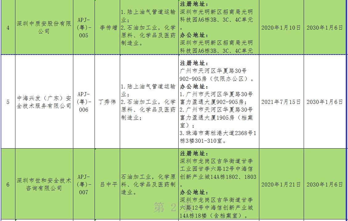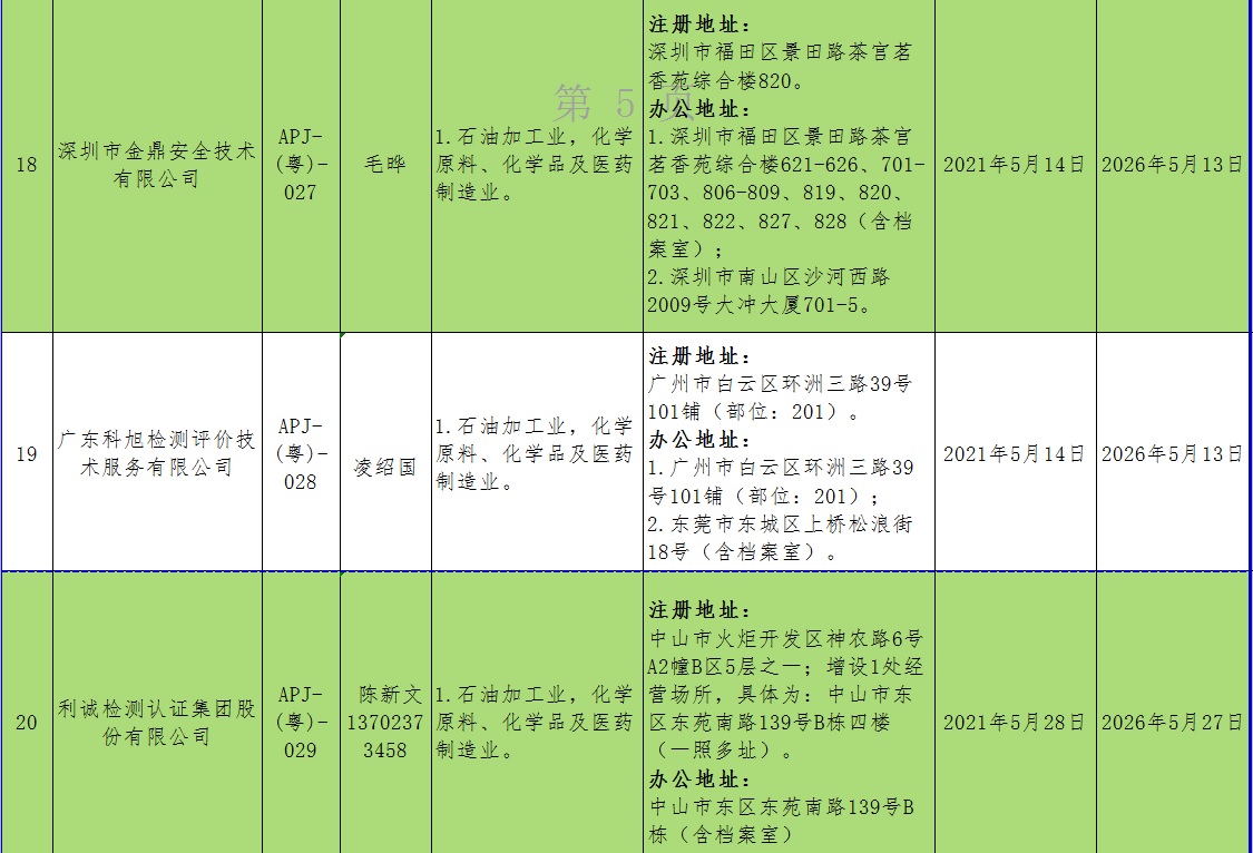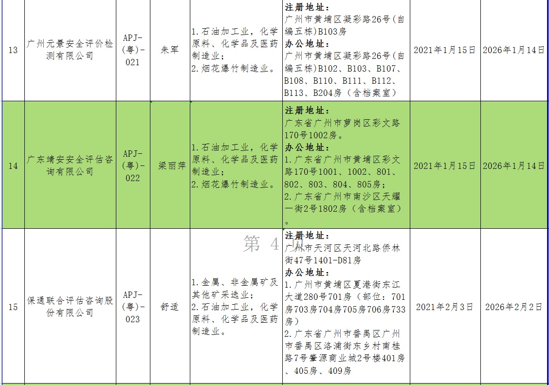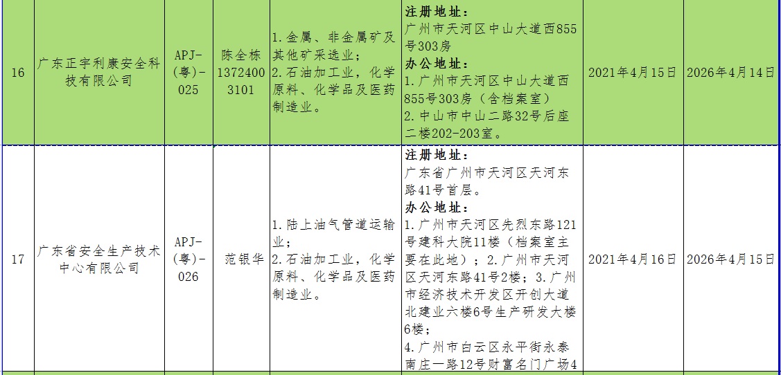 广东省行政区域内注册的安全评价机构25家,安全检测检验机构1家,更新时间:2025年9月